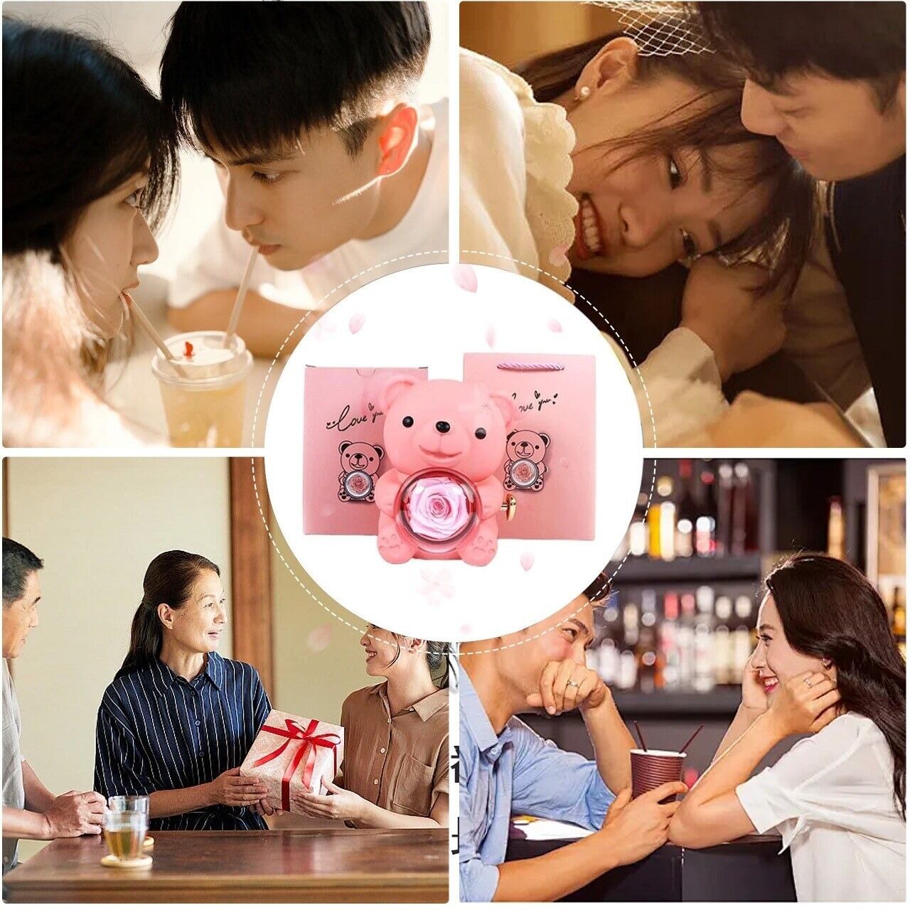 22.ハグベア(抱っこ熊)回転式プリザーブドフラワーギフトボックス 指輪・ネックレス用ジュエリーボックス クマのネックレスボックス リアルローズベアボックス バラの入ったジュエリーボックス(ネックレス付きなし)