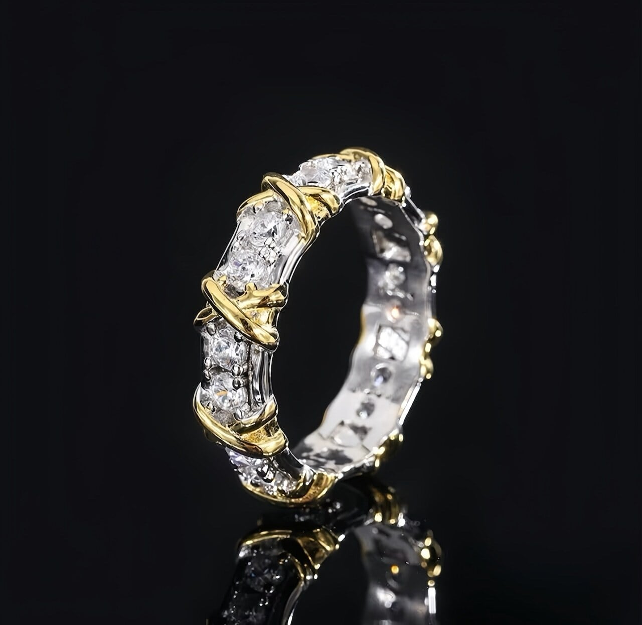 【人気急上昇】二色メタルデザインリング|存在感抜群のデザインジュエリー