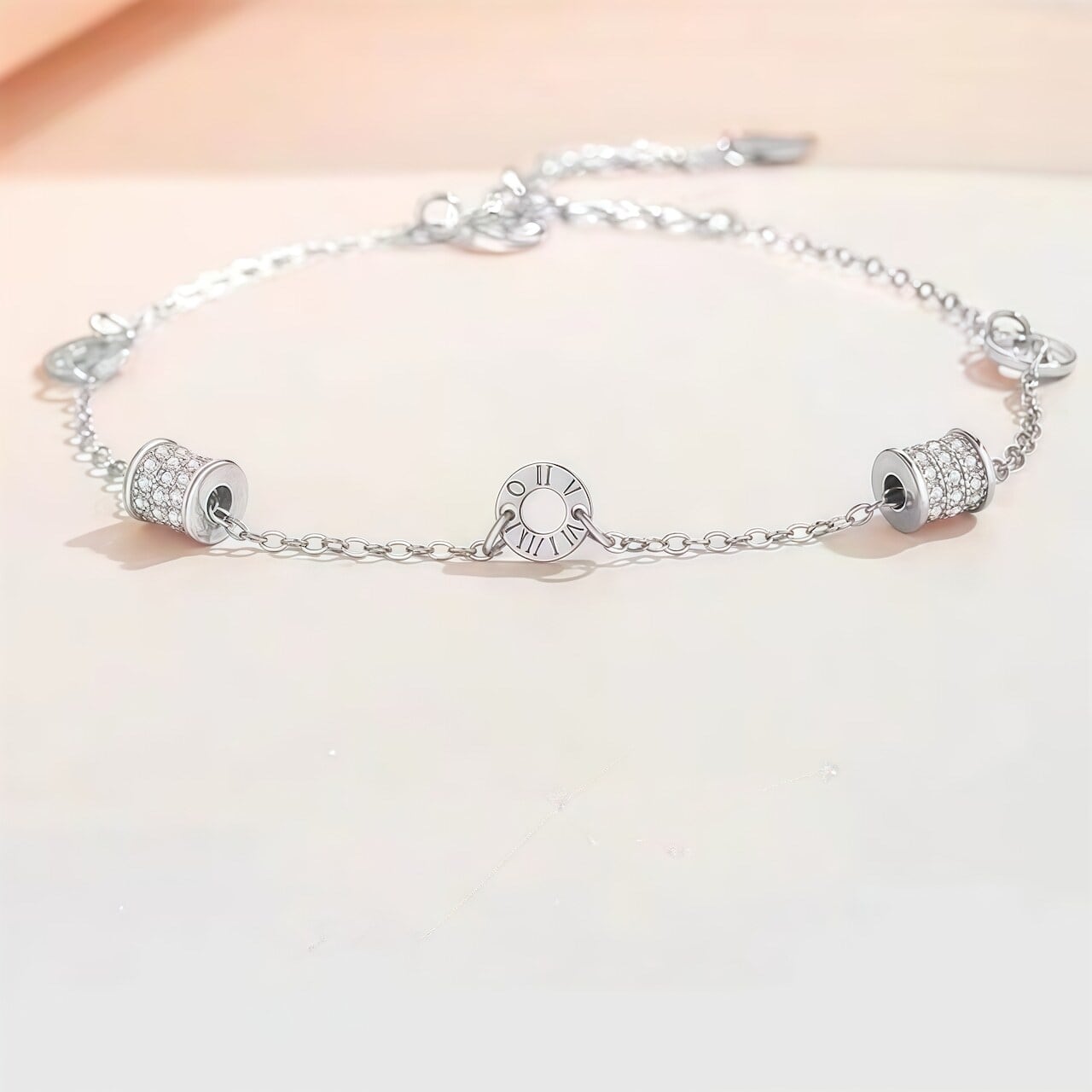 【選べる2色】華奢ブレスレット ローズゴールド/シルバー|ローマ数字チャーム&ジルコニア・上品な大人の輝き