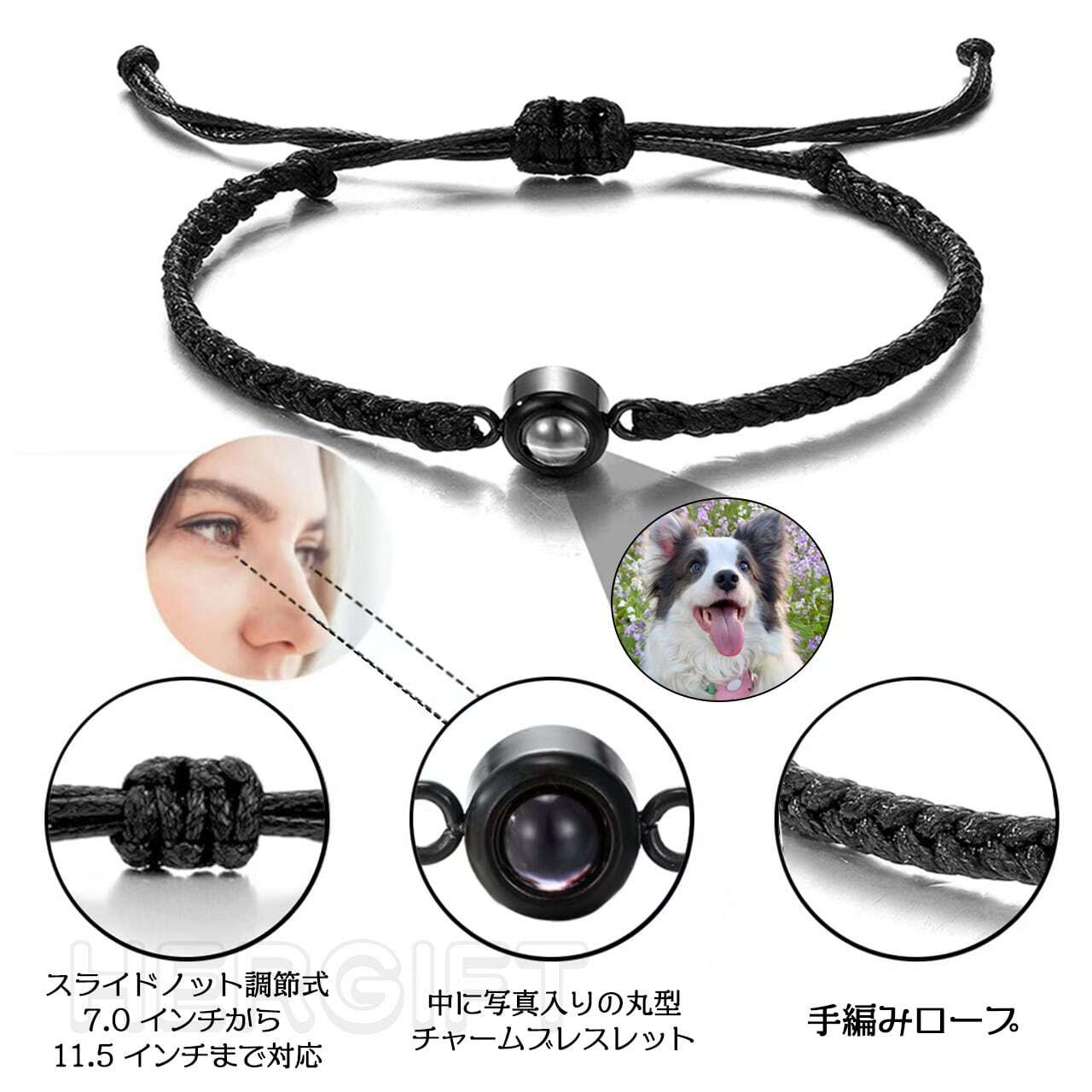 投影ブレスレット マルチカラー 写真カスタマイズ プレゼント用手紐 ギフト包装付き