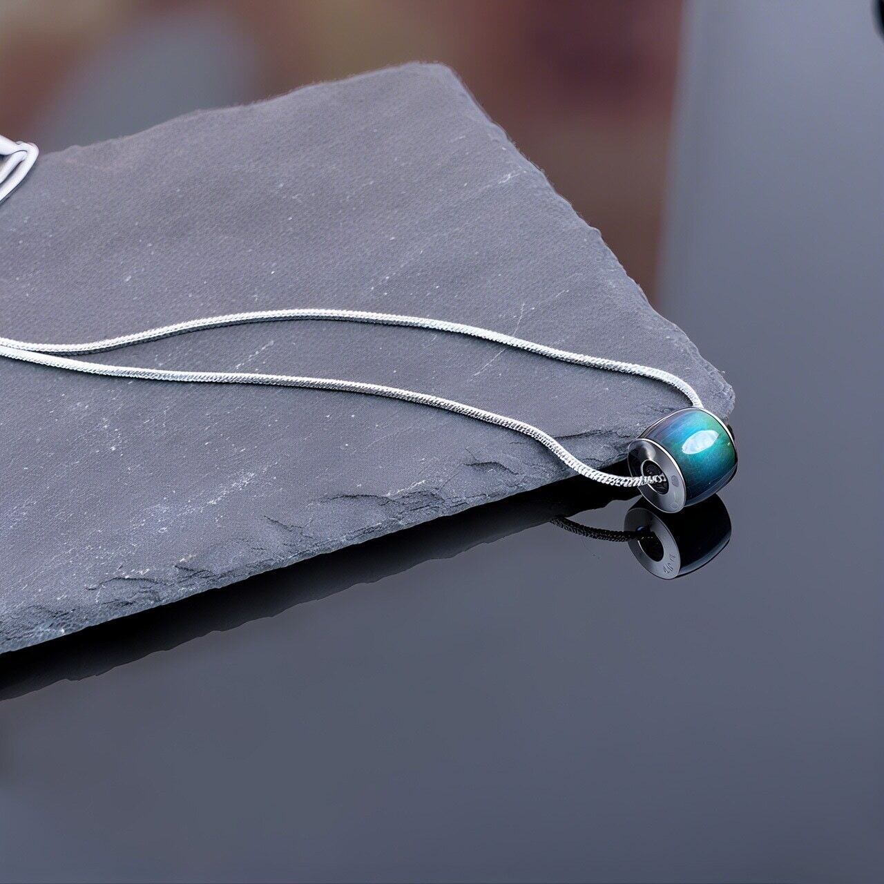 体温や周囲の温度に反応して、ペンダントの色が美しく変化します。
