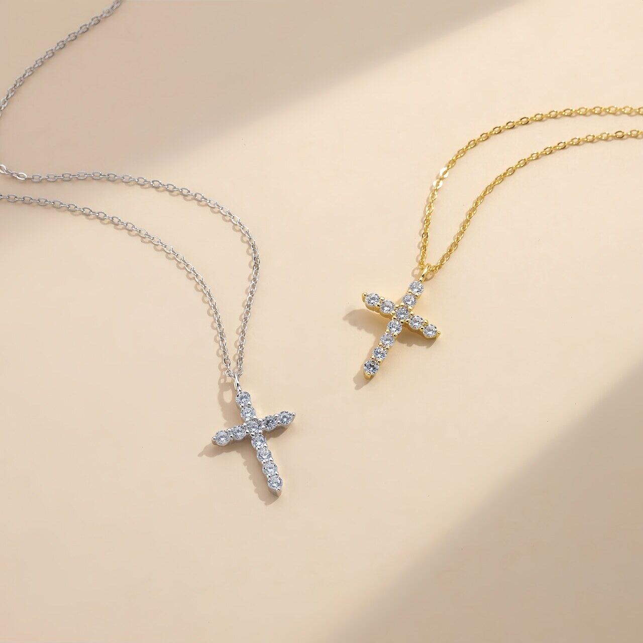 胸元に上品な輝きを添える、ジルコニアがきらめくクロスネックレス。シンプルなのに華やかで、デイリーにも特別な日にもぴったりな一品