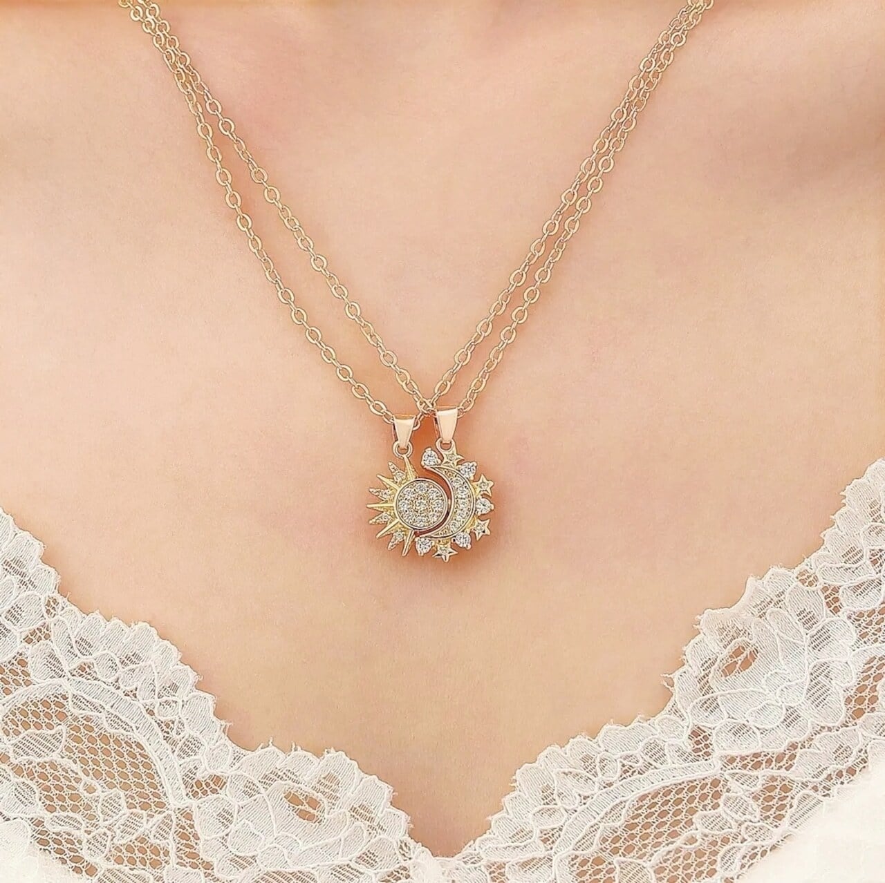 磁石吸着 太阳&月亮 カップルネックレス ファッショナブルで百搭 高級感満載 親友へのプレゼントに最適