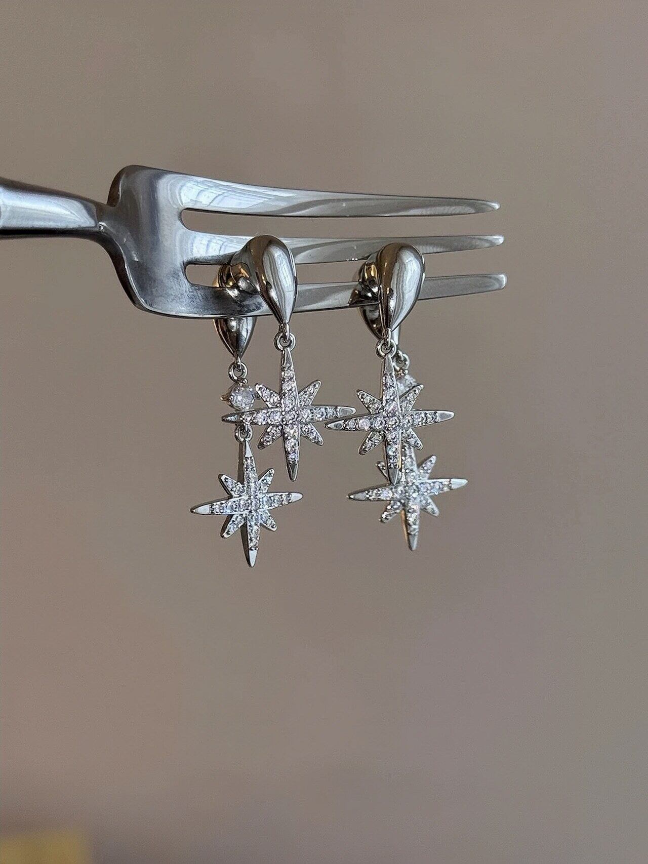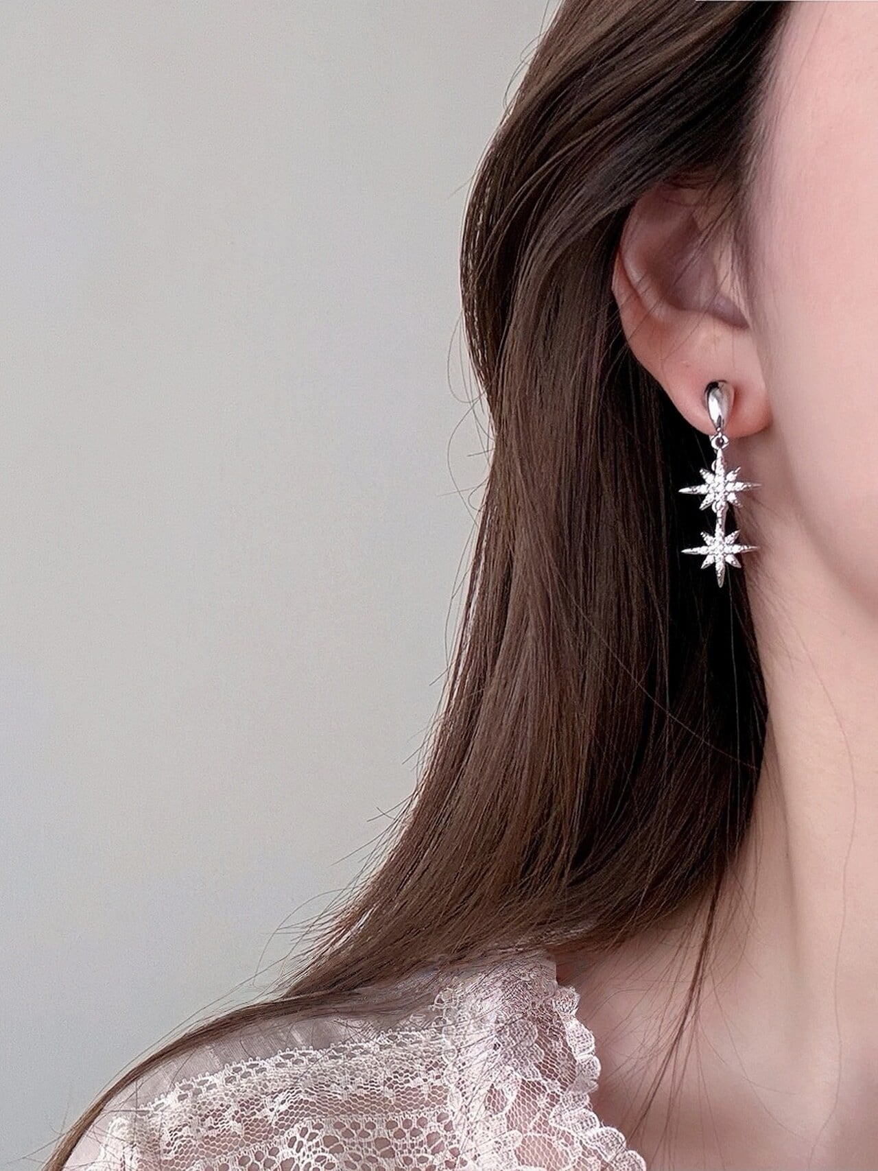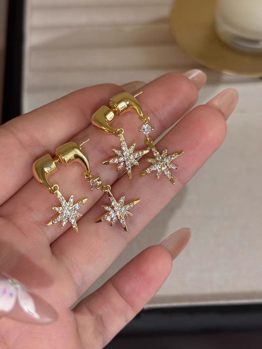 【人気定番】925シルバー針 スター ダブルドロップピアス|繊細な輝きで耳元に上品なアクセント