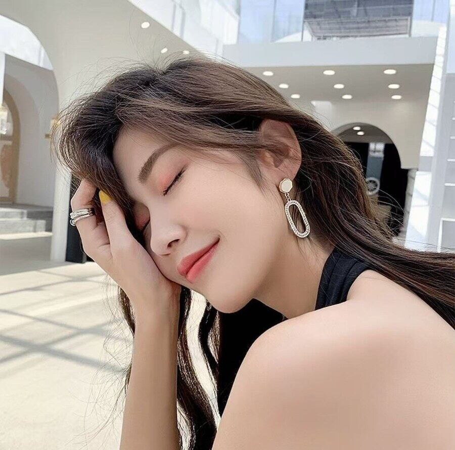 【925銀針・金属アレルギー対応】 ホワイトシェル × クリスタル ゴールドメッキ オーバルスイングピアス