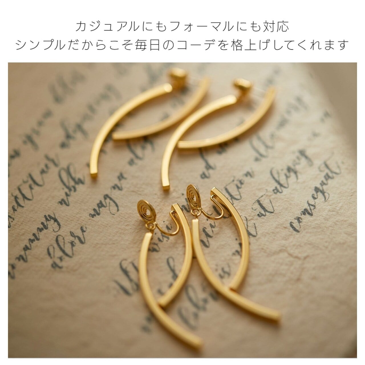 華奢なラインが耳元をすっきりと見せ、カジュアルからきれいめスタイルまで幅広く合わせられます。
