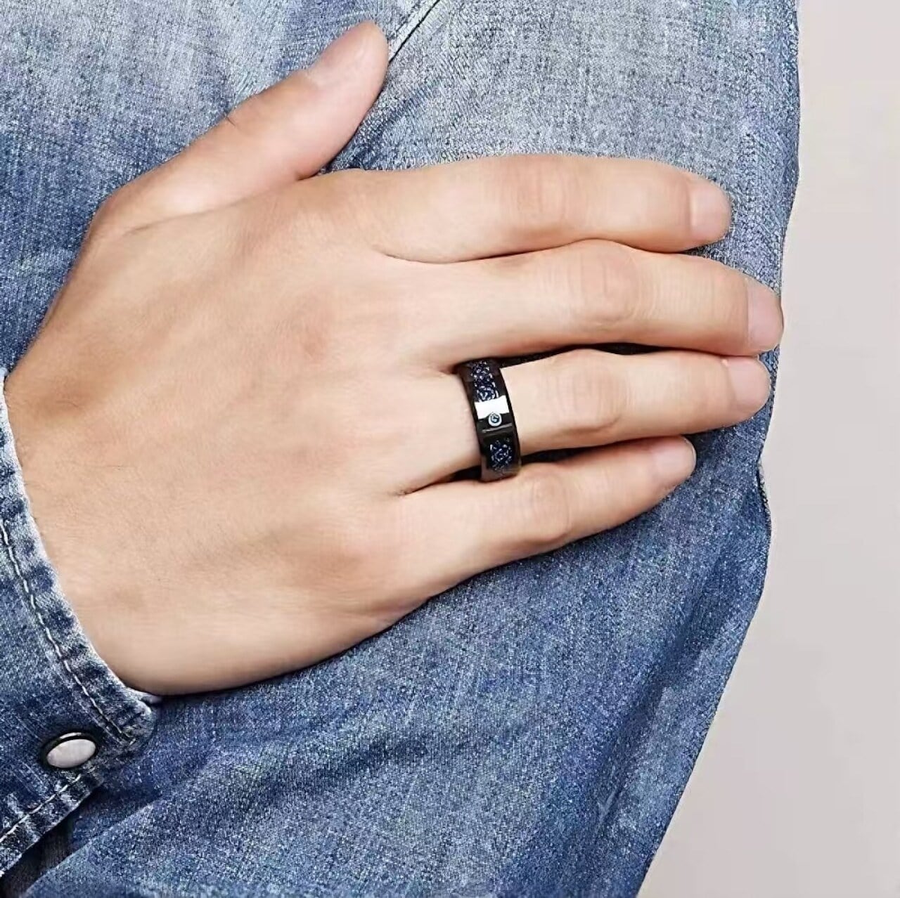タングステン製 メンズリング|ブラック×カーボンファイバー 耐傷・防水・色褪せなし|高硬度・モダンデザイン