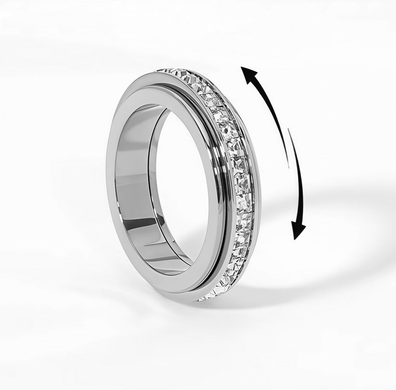 手元できらめくCZラインと、くるくる回せるスピナー仕様が魅力の回転リング。