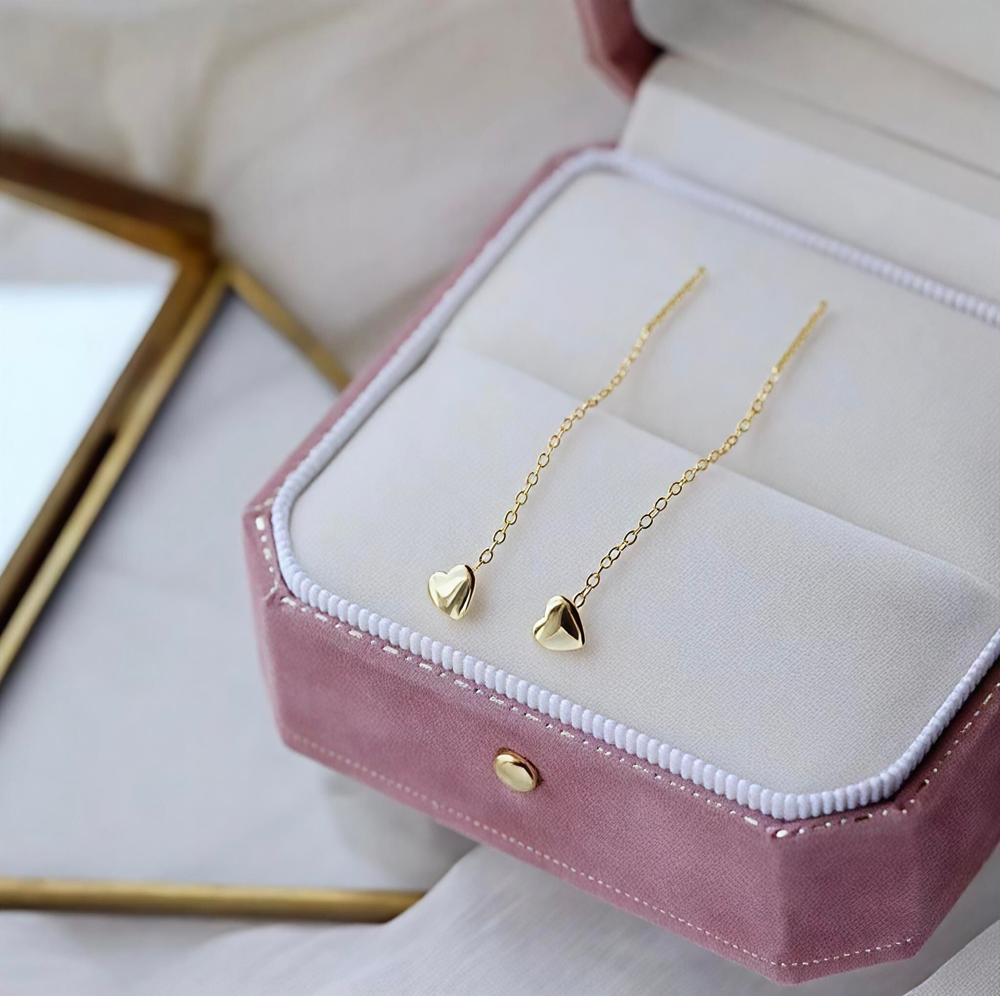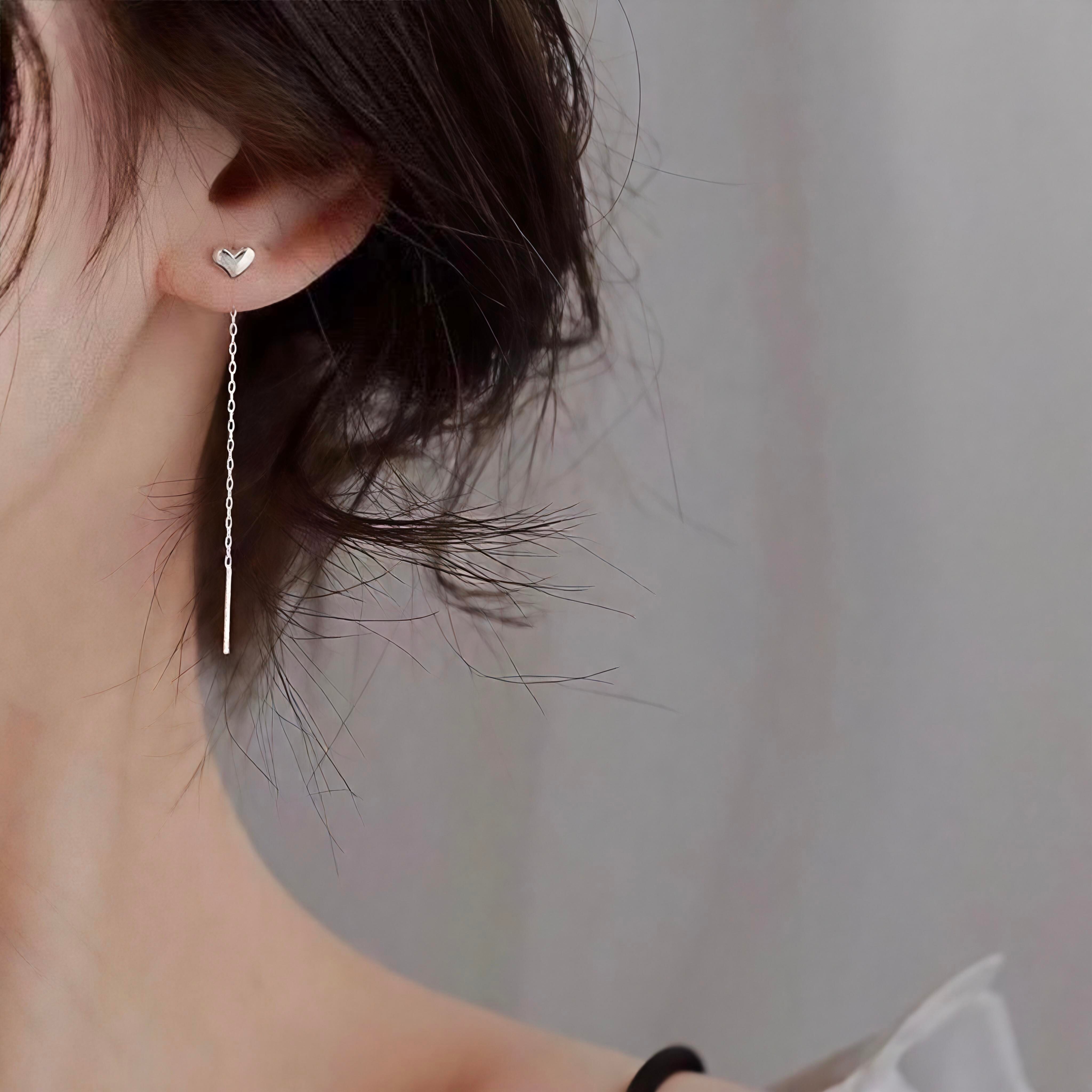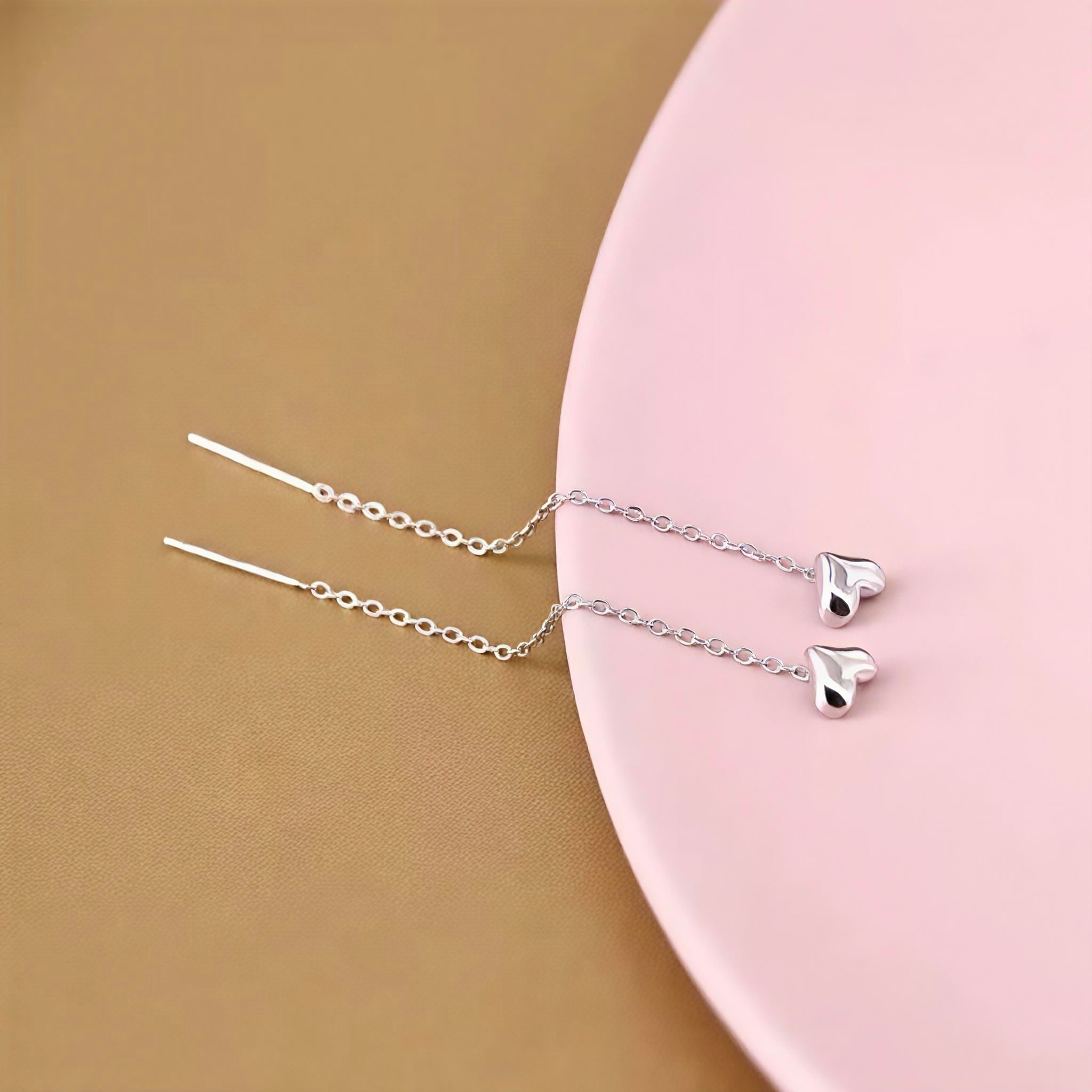 韓国風ハートピアス ロングチェーンピアス チタン鋼 アレルギー対応 揺れるピアス レディース ゴールド シルバー