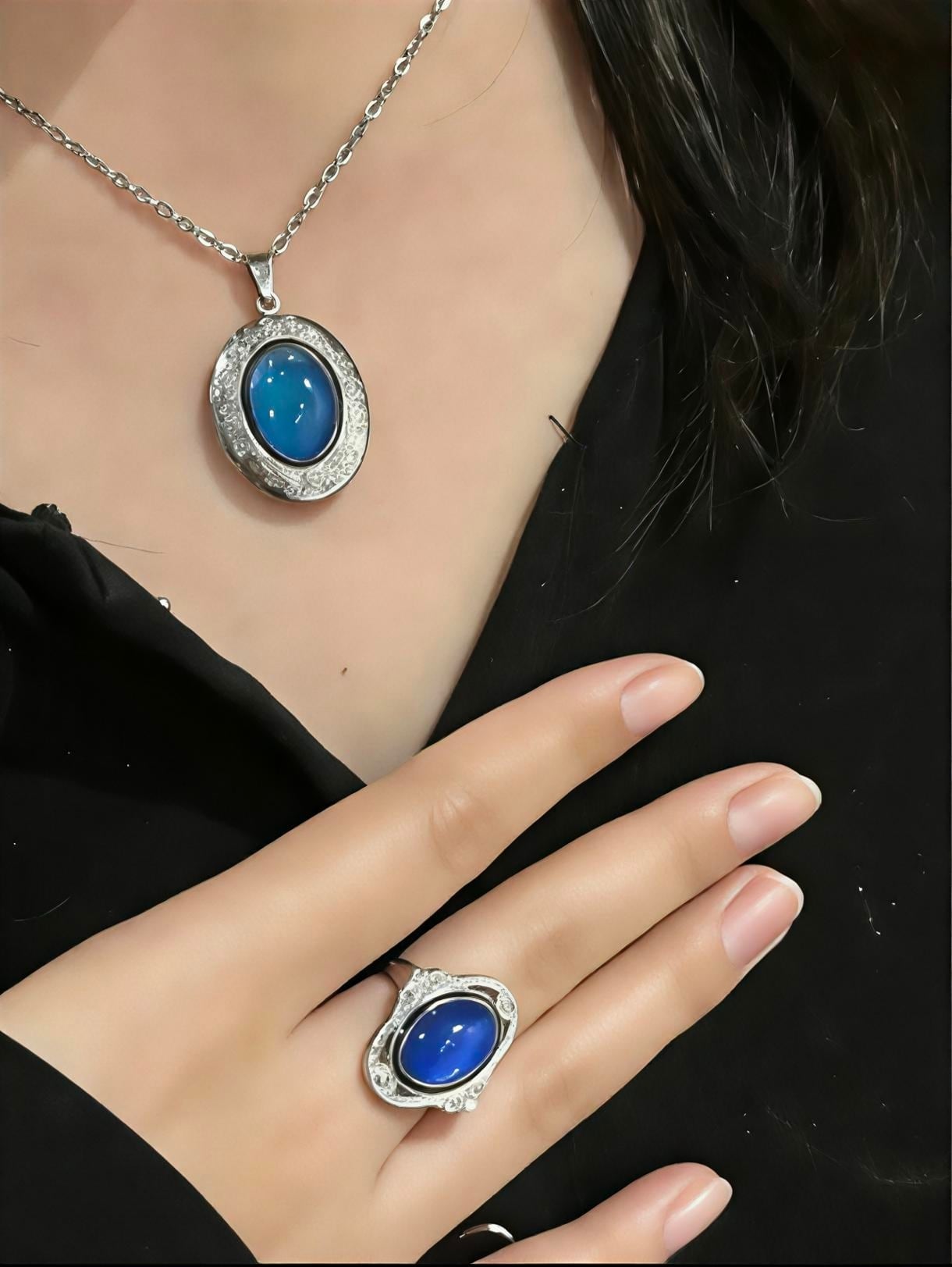 体温や環境の変化で、ブルー、グリーン、琥珀色…と表情を変えます。世界にひとつ、あなただけの色彩を楽しめる特別感のあるアイテムです。