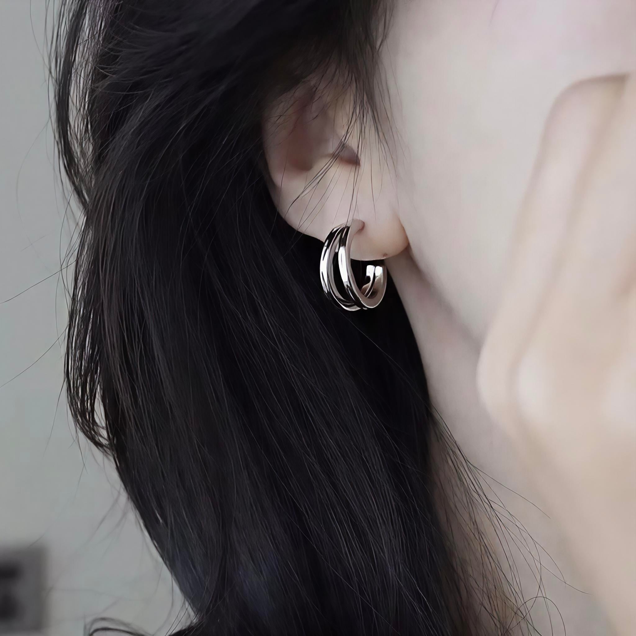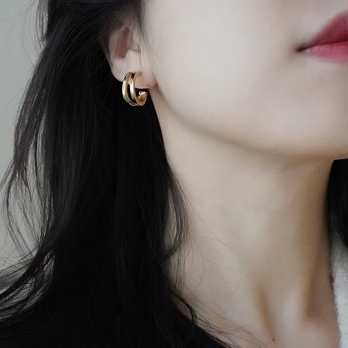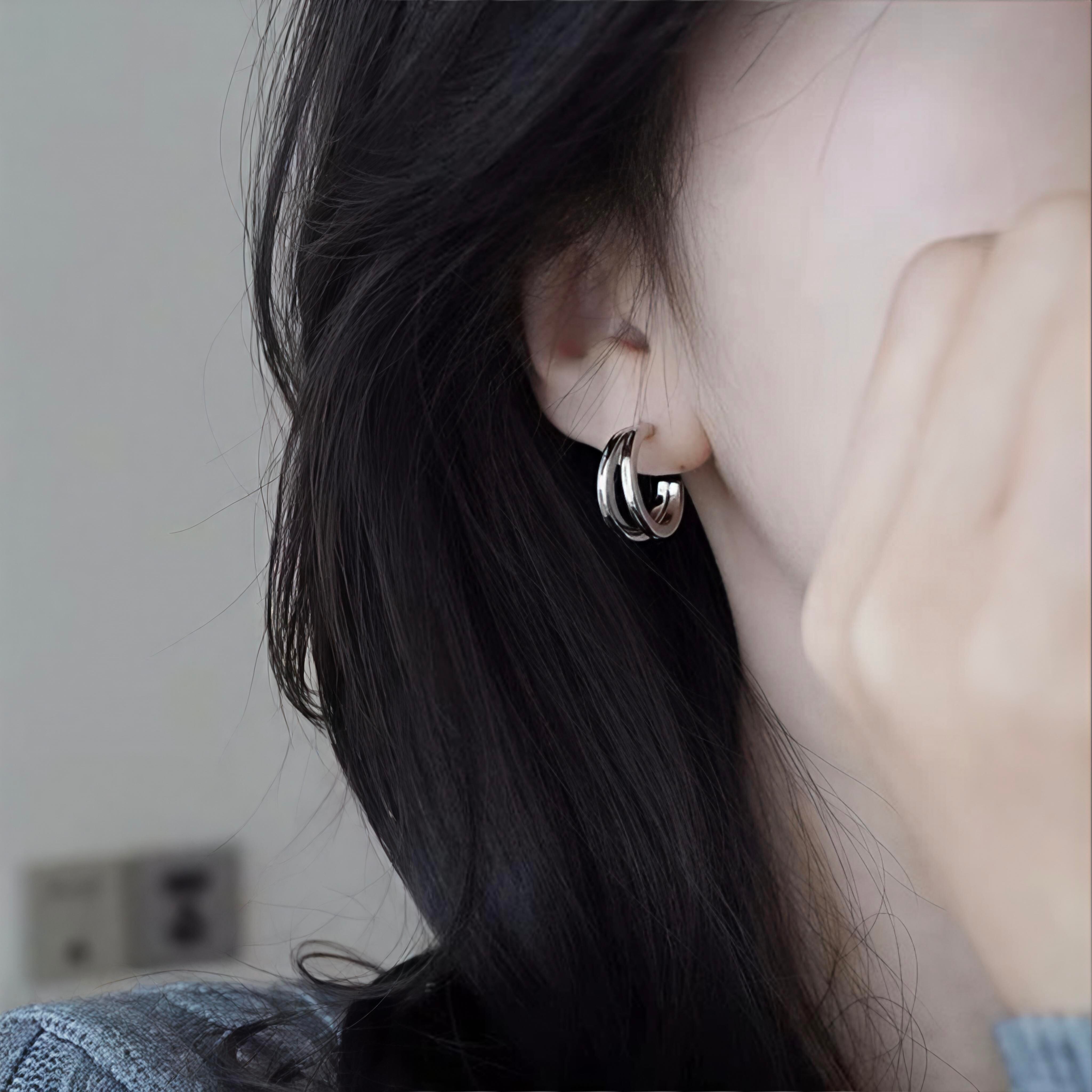 洗練された2連ダブルリングのデザインが、耳元に上品なアクセントをプラスします。