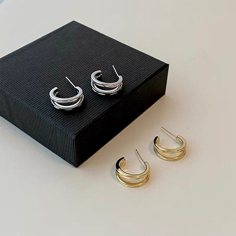 【全4種】ダブルリング イヤリング ピアス 2連 小ぶり シンプル おしゃれ 上品 ミニマル 冷淡風 ジェンダーレス レディース メンズ シルバー ゴールド