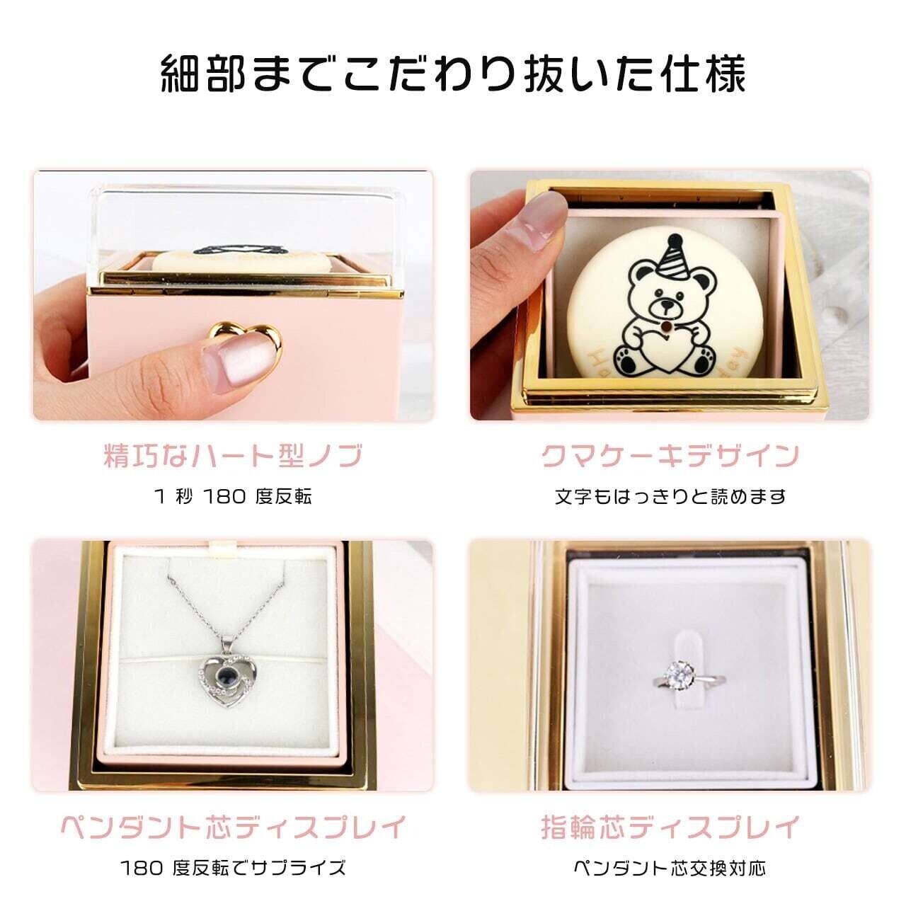 ワンタッチ回転 クマケーキ型リングケース180°サプライズ演出|プロポーズ ギフトボックス,想いを伝える、サプライズリングケース。