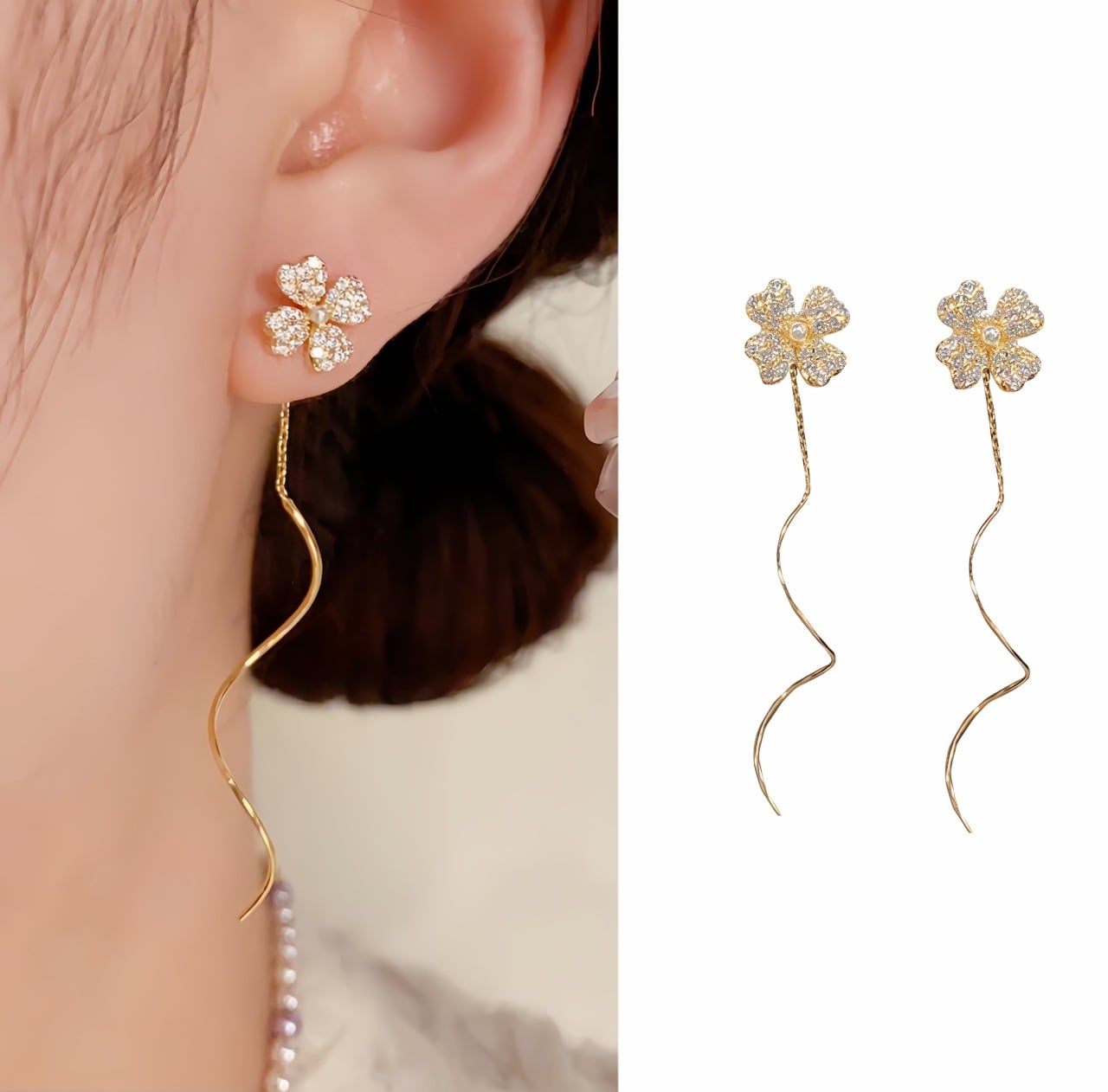 【四つ葉クローバーピアス】揺れるウェーブデザイン|上品フェミニン・幸運モチーフ